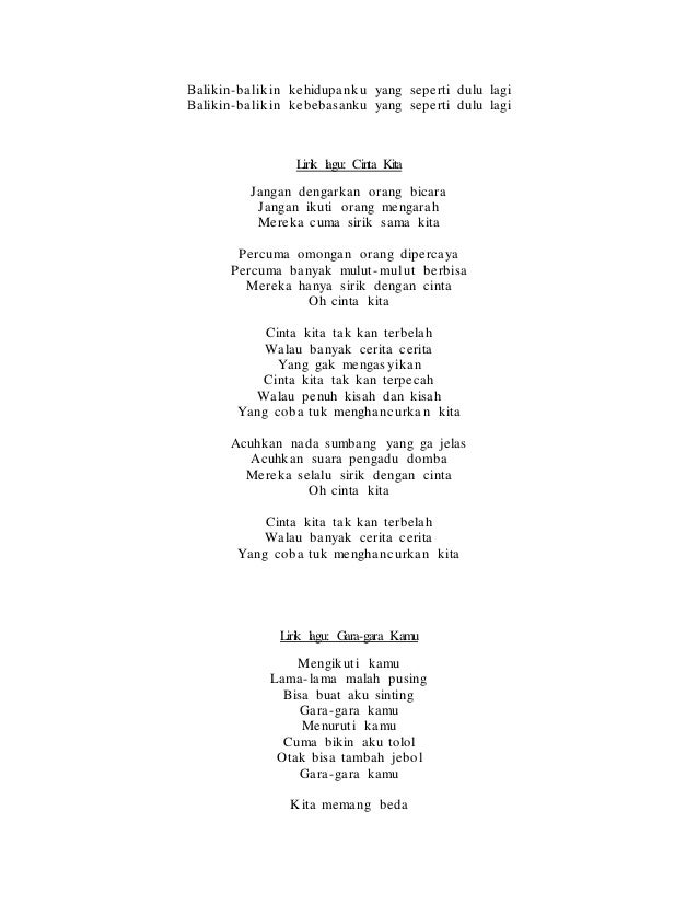Jangan dengarkan orang bicara jangan ikuti orang mengarah mereka cuma sirik sama kita. lirikata lirik lagu cinta karena cinta (ost sinetron 'cinta karena cinta' di sctv) dari judika. Cinta kita adalah yang terbaik karna sayangmu bertambah imanku saat di dunia engkau membantuk di surga ku pun ingin bersamamu. Music kisah cinta kita lirik 100% free! Membuat cinta kita remuk redam. •hafiz suip•ost:dia menantu rahsia kan ku ceri. Temukan lagu terbaru favoritmu hanya di lagu 123 stafaband planetlagu. Cinta kita tak kan terbelah walau banyak cerita cerita yang gak mengasyikan cinta kita tak kan terpecah walau penuh kisah dan kisah yang coba tuk. Aku seorang lelaki ku mahu dicintai sepenuh hatimu tuk diri ku. Cinta kita (from get married 2 soundtrack). Lirik lagu dan video klip. Read kisah cinta kita from the story lirik lagu terbaik by syafye (شافي_30) with 240 reads. Lirik kisah cinta kita mp3 ✖.